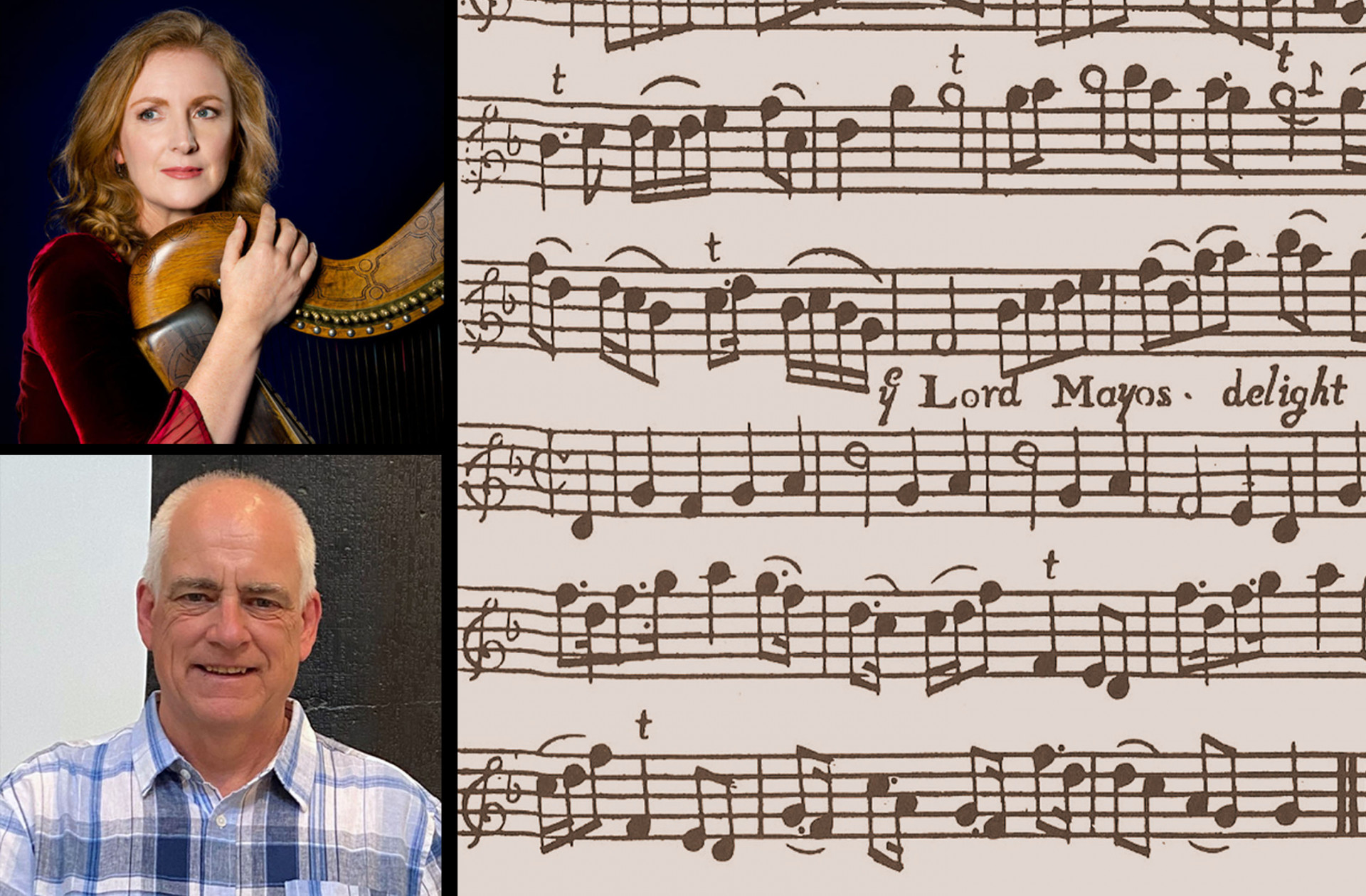 In her three sessions, harpist and musicologist, Siobhán Armstrong, will get you ‘singing’ the song with your fingers on your harp, guided by what you have already learned by studying and singing the song. You will also get to explore the many – and very interesting – surviving manuscript and early printed sources for the melody: from a version in the first ever collection of Irish music printed in Ireland (1724), through a 19th-century source from the Hebrides in Scortland, to an archive recording from 1903, amongst others. In the final session, Siobhán may also introduce you to a gorgeous slow-air variant of Tiarna Mhuigh Eo collected by Séamus Ennis in Donegal in 1943, and recorded by the Donegal fiddler Frank Cassidy, among others, in the 1970s.